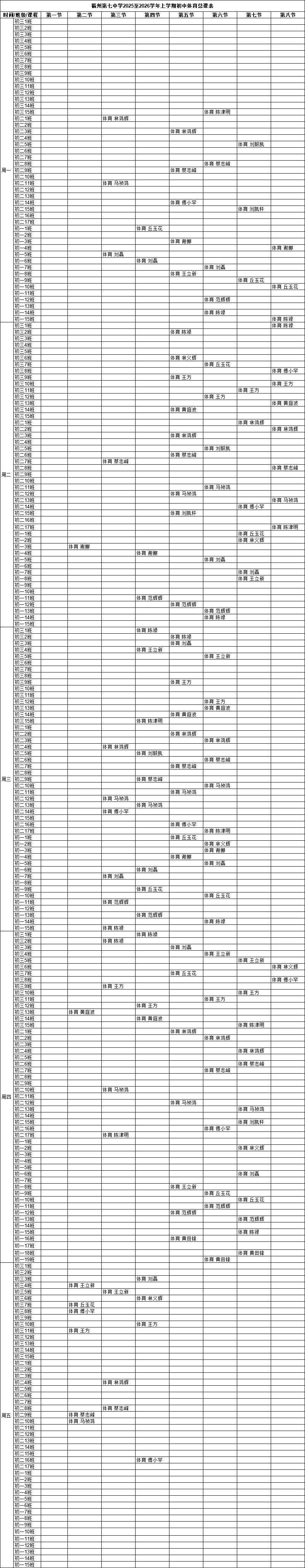 福州第七中学2025-2026学年第一学期体育与健康课程表公示