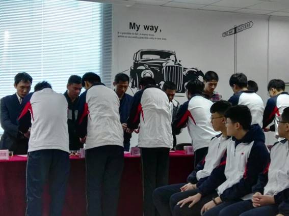 2017年12月19日我校汽修部在泉州华侨职校洛江校区举行现代学徒制的拜师仪式,该仪式标志着学校汽修部与南峰汽修校企合作项目正式启动,此次合作经过校企双方多次相互调研、企业入校讲座、学生意向调查、企业招聘等各个环节,总共有24名学生被顶发南峰汽修录用,仪式结束后这批学生就到企业进行为期一年的教学实训。