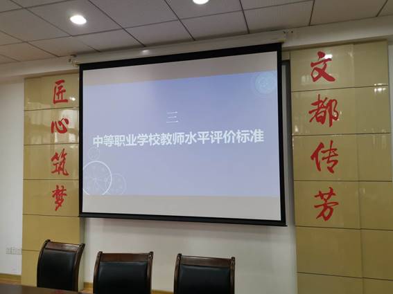 2019年12月12日下午,张副校长再次为新教师开展《中等职业学校教师水平评价标准》的讲座。