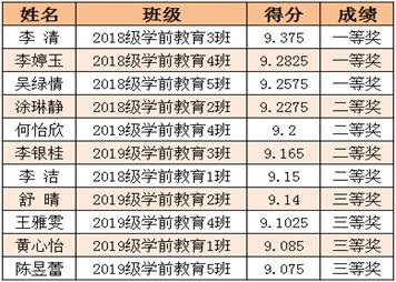 日前,学前教育专业部举行钢琴、声乐、舞蹈技能比赛,最终9位钢琴技能参赛选手、11位声乐技能参赛选手和7位舞蹈技能参赛选手经过激烈角逐脱颖而出,现将具体获奖名单及成绩公布如下: