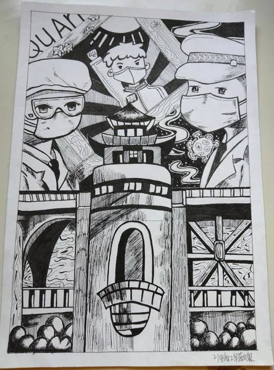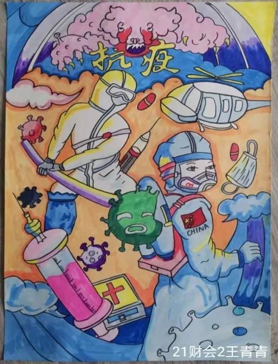 活动期间同学们创作出了许多优秀的作品,用多种绘画方法和绘画角度表现出对疫情工作者的赞美与鼓励,体现了坚定战胜疫情的决心,同学们在活动中也产生了不小的收获,感触良多。
