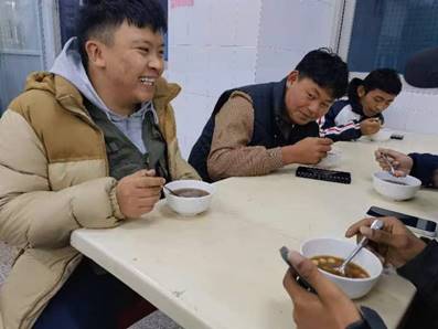 2023年11月22日,冬至当天晚上7点,西藏班的全体学生们早就兴致勃勃的坐在食堂等待了,他们对这个从未尝试过的传统美食感到十分的期待。在煮好的圆子端上来的那一刻,同学们就迫不及待地上前排队了。西部协作中心的老师们将暖暖的圆子一碗一碗舀好,递到他们的手上,同学们笑着接过有礼貌地道谢。冬至圆子汤里加了红糖和生姜,同学们喝了之后都感觉全身暖暖的。暖心的同学们提议将这一锅暖暖的冬至圆子和生活老师以及门口值班辛苦的保安叔叔们一起分享,在老师的带领下,他们将自己打包的一份份带着美好心意的冬至圆子送到了老师以及保安叔叔的手上。