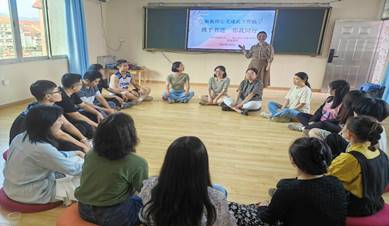本次活动包括“电波传递”“指责与讨好”“寻找最喜欢的手”“回音壁”等环节。在“电波传递”中,老师们通过互相传递“电波(信号)”来完成游戏,随着游戏难度的增加,老师们相互之间的配合也越来越密切,现场氛围热闹而温馨。“电波”互动促进了彼此之间的情感交流,老师们的友谊和信任也得到了升华。在“指责与讨好”环节,老师们通过角色扮演意识到自己人际交往中常用的应对方式,深入了解不同沟通风格带来的影响,进而学会照顾自己内心感受,也学会换位思考。在“寻找最喜欢的手”环节,老师们蒙上双眼在音乐的伴随中寻找自己最喜欢的手,通过探索自己的人际交往模式,体验主动交往的乐趣,增进相互之间的信任。在“回音壁”环节,老师们自由地表达自己的想法、感受和需求,在“回音”中感受他人正面反馈的力量。最后,老师们使用一个关键词对本次活动进行总结,“放松”“开心”“有趣”“充实”等词汇成为大家的普遍选择。