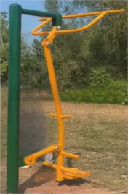 产品所采用国标优质Q235钢材,主要承载立柱φ114*3.0mm,主要承载横梁口40*80*3.0mm,产品经过抛丸除锈机表面处理后采用全天候防紫外线户外塑粉静电喷涂烘烤至220度而成,踏板采用4mm钢板一次冲压成型,摆腿内置限位装置,最大摆幅85°,防盗件采用不锈钢配件。 |