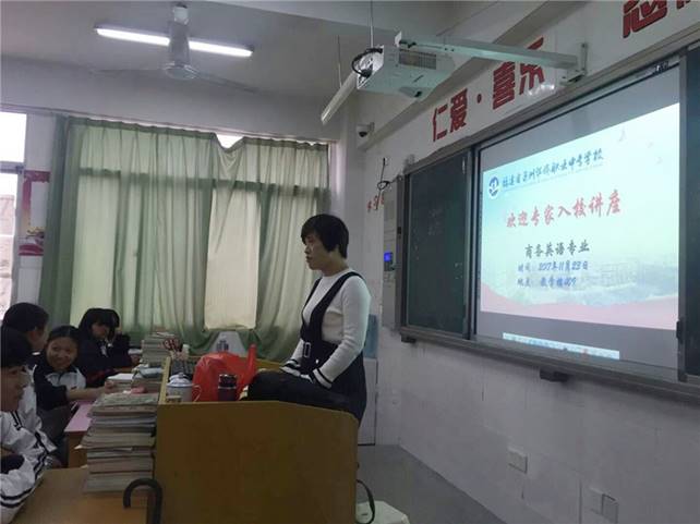 为了丰富校园文化氛围,提高学生对社会的认知实践。自2017年10月12日起至今,泉州华侨职校商务英语组每周都特邀专家到学校,为商务英语专业的学生进行精彩的入校讲座。
