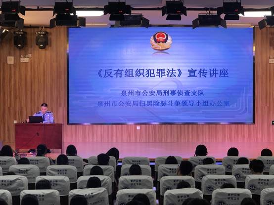 为进一步宣传普及《反有组织犯罪法》,增强全校师生反有组织犯罪的意识和能力,深入推进平安校园建设,11月23日下午,我校邀请泉州市公安局刑侦支队白杨明警官入校开展《反组织犯罪法》主题讲座。