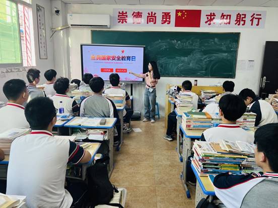 班会课上,班主任向学生讲解什么是国家安全,维护国家安全的意义以及如何维护国家安全等知识。同时,结合社会安全、网络安全等方面的典型案例,以案释法,深入浅出地普及国家安全相关法律法规,引导学生和广大群众树牢总体国家安全观,增强防范意识。大到国防安全,小到我们日常的网络生活,都离不开国家安全的保障。在日常生活中,遵守法律法规,不信谣不传谣,保护好个人信息,这些看似简单的行为,其实都是在为国家安全添砖加瓦。